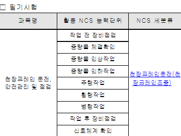 천장크레인운전기능사 시험일정 및 시험과목