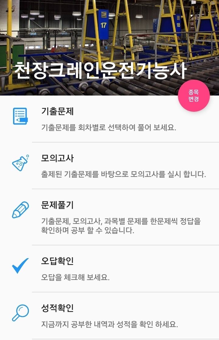 천장크레인운전기능사 필기 기출문제 푸는 곳