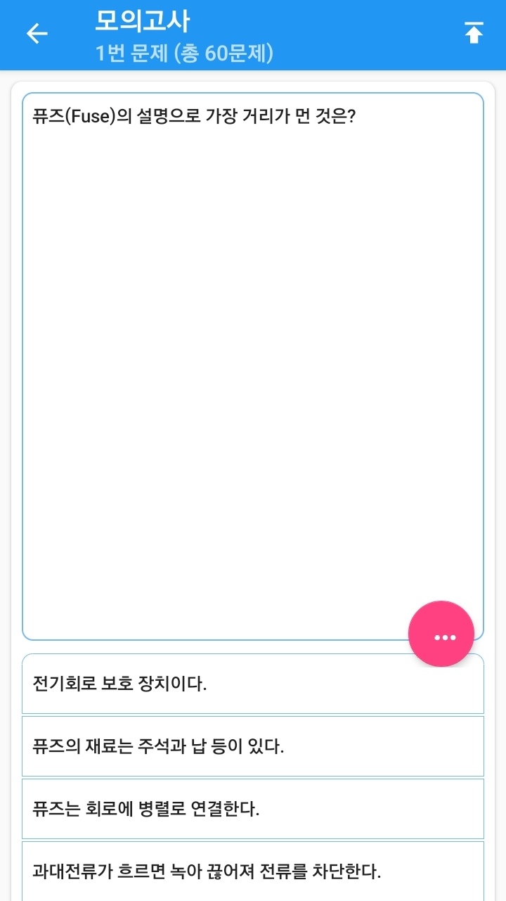 위 어플을 이용하면 연도별 필기 기출문제 및 모의고사 등 여러유형의 문제를 풀 수 있고 오답확인도 가능한 매우 좋은 어플입니다.
