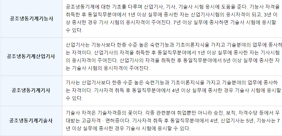 공조냉동기계기능사 자격증 정보