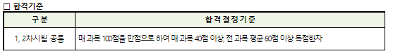 기술지도사의 합격기준은 1차, 2차 공통으로 매 과목 100점을 만점으로 하여 매 과목 40점 이상, 전 과목 평균 60점 이상 득점하여야 합격 가능합니다.