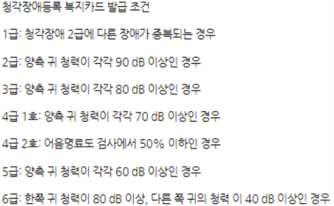 지원자격은 '청각장애'로 등록되셔야만 지원이 가능한데 청각장애 등록 하는 방법에 대해 설명해드리도록 하겠습니다.