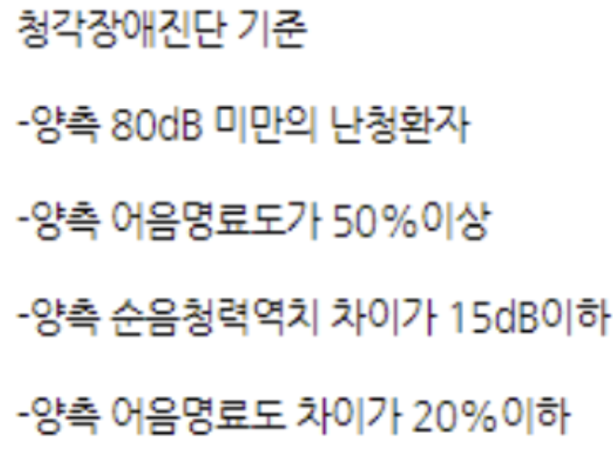 - 일정 수준 이상의 난청 진단을 받은 경우