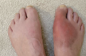 - 엄지발가락이 빨갛게 붓고 걷기 어려움