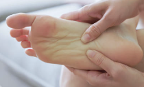 손가락으로 발뒤꿈치 전면부나 발바닥 중앙을 눌렀을 때, 예리하고 깊은 통증이 발생한다면 족저근막염을 의심할 수 있습니다.