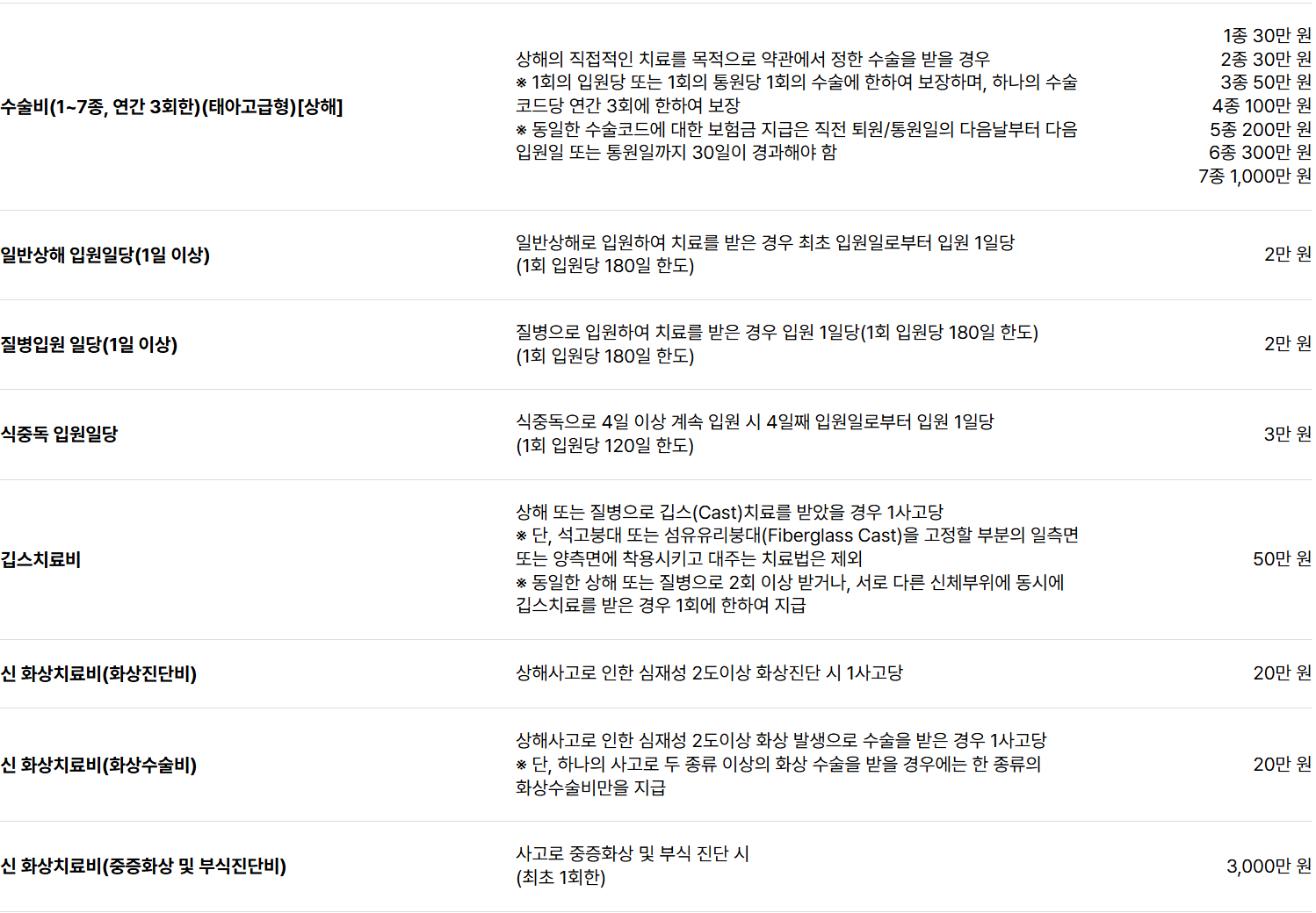 보장 항목 주요 내용