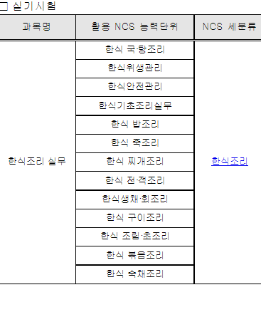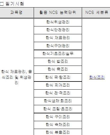 한식조리기능사 시험도 국가기술자격의 현장성 및 활용성을 제고하기 위해 국가직무능력표준 (NCS)를 기반으로 시험을 봅니다.