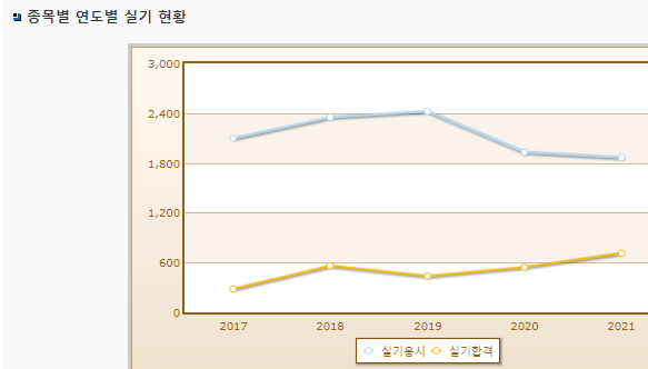 필기시험 합격률이 실기시험보다 낮은 시험입니다.