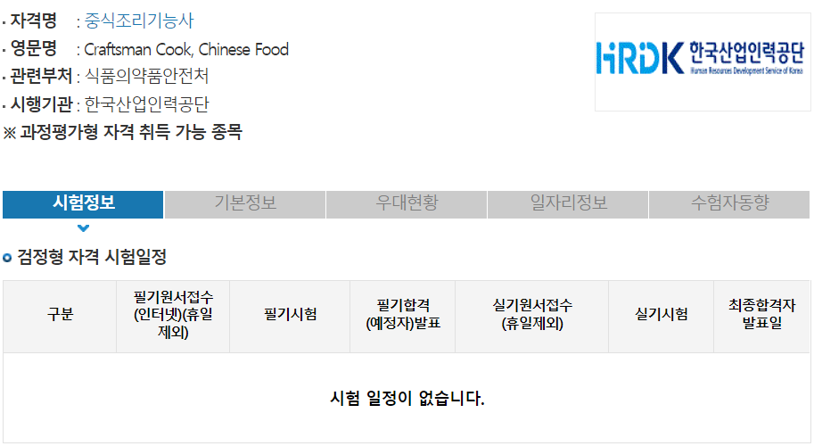 중식조리기능사는 다행이 중식조리산업기사에 비해 응시자격이 없어 누구나 응시가 가능합니다.