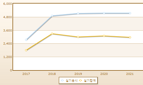 실기시험 합격률이 낮은 편은 아니면 시험 응시생은 꾸준히 증가하는 추세입니다.