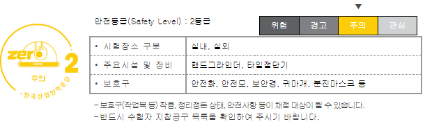 타일기능사 시험의 안전등급은 높지 않은편이지만 그래도 보호구 및 수험생 지참공구 목록을 확인하여 챙겨가야 감점을 당하지 않으니 꼭 챙기시길 바랍니다.